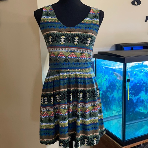Green Aztec Mini Dress Gently loved unbranded dress Worn twice With tie at the back V neck in front XS size