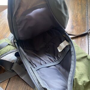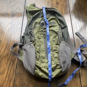Explore the outdoors with the Green Backpack. Designed for comfort and durability, this bag is perfect for all your adventures. All zippers and clasps functional. Good condition.