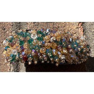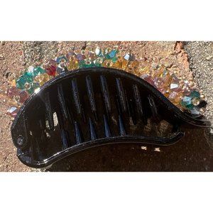 Green Banana Multi-Colored Crystal Hair Clips -- NEW. This barrette is different and you will not see yourself coming and going. The primary dark stones are black and navy. The crystals are bright, shiny, and brilliant. The teeth of the barrette will ensure that the barrette will stay in-place. Measurement: Length: 4"; Height: 2"