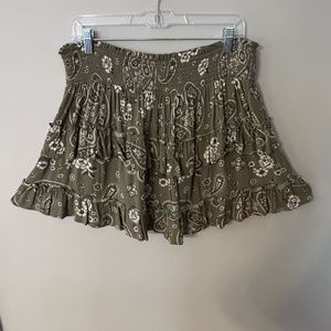 Adorable sage green bandana print flirty mini skirt with elastic waist