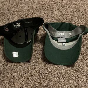 Gently used Green Bay Packer hats. Hat on the left, size medium-large. Hat on the right, sideline hat, size large-x large.