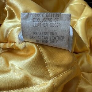 Green Bay Packers Vintage Bomber Jacket with leather sleeves, shoulders, collar, and trim. Rest is 100% cotton that looks and feels more like felted wool. JH Designs official NFL licensed product. Good vintage condition. Appliqué patches could use spot cleaning after being in storage (see photos). Snap front. Front slit pockets with leather trim. Inside slit pocket. Size M fits true to size. About 26.5" pit-to-pit. 28" down back. 15" from shoulder seam to wrist.