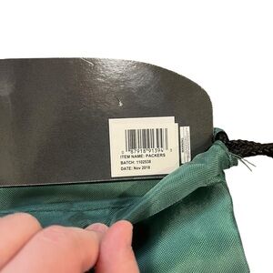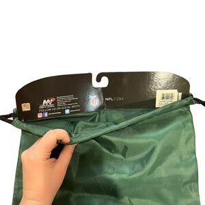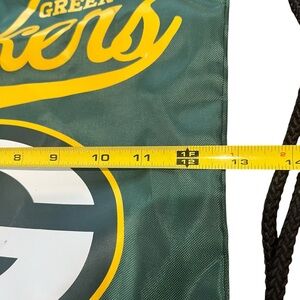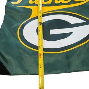 NFL Team Backpack for the Green Bay Packers. This bag is roughly 17.5 x 13”. Item is green mainly and has black strings.