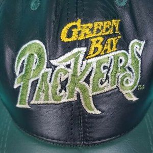 Green Bay Packers Hat Vintage 90s Genuine Leather Snapback Cap USA