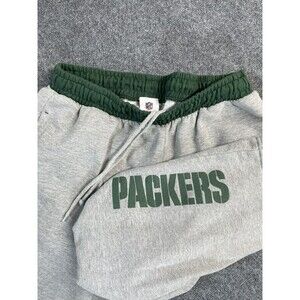 These Green Bay Packers sweatpants in men's size M. The gray pants feature the NFL Packrers logo, making them perfect for lounging while supporting the National Football League team.