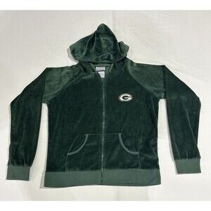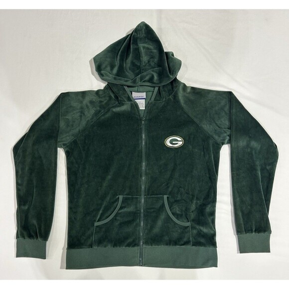 Green Bay Packers Womens Reebok Green Velour Full Zip Hoodie Sweatshirt LG P1