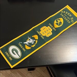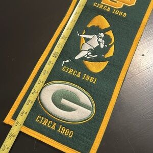 Celebrate the Green Bay Packers with this vibrant banner. Features team logos and years. Perfect for fans and collectors. Bundle & Save!!! Make sure to look at my other items - if you bundle 3 or more items save 10%! Thanks for checking out my closet! New to Poshmark? Use my referral code to get $10 after your 1st order - posherrachel