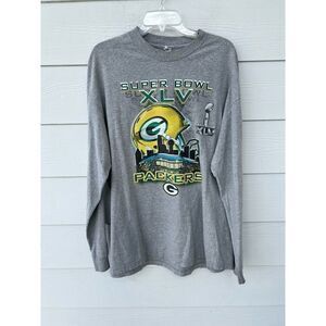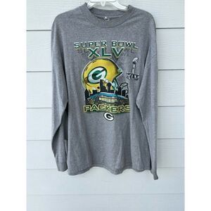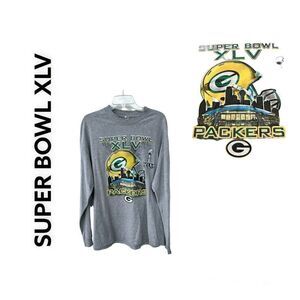 Green Bay Packers Super Bowl XLV NFL color Gray Long Sleeve Helmet printed Tshirt size XL. 2011 The Green Bay Packers captured their fourth Super Bowl title and 13th world championship on Sunday night in front of 103,219 at Cowboys Stadium with a 31-25 victory over the Pittsburgh Steelers in Super Bowl