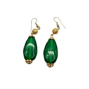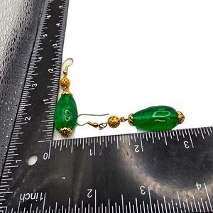 Green Beaded Earrings Vintage Style Filigree Gold Tone Spacers Irregular Texture
