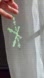 This snowflake is designed with frosted glass beads, bicone beads and green Aurora borealis coated seed beads with a clear rhinestone center on both sides
