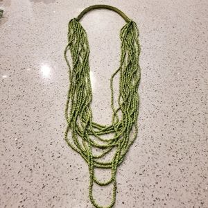 Green Beaded Statement Necklace Long Layered Tiered Tribal Boho Tropical Preppy