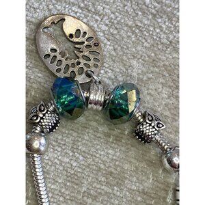 Green Beaded Tree of Life and Owl Bali-Style Charm Bracelet in Silvertone