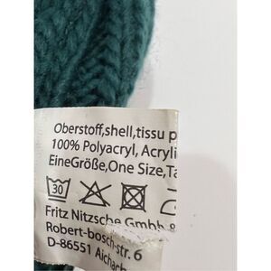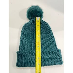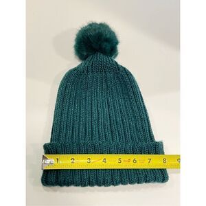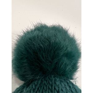 Green Beanie Hat Real Fur Pompon Knit One Size Adult