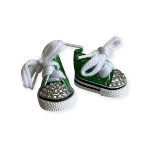 Add sparkle to your doll's wardrobe with these adorable bedazzled green sneakers!