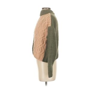 Green Beige ColorBlock Knit Sweater Mock Neck XS