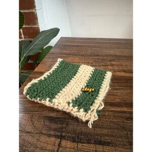 Green & Beige Crochet Pouch with DIP Devices Pin