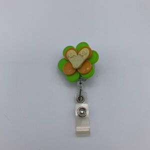 Keep your ID or documents organized and stylish with this green and beige grannycore lanyard clip and reel. The floral pattern and center flip flops charm make it perfect for spring and summer. The small size and uniform style make it suitable for women of all ages.