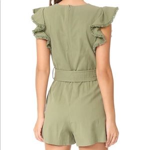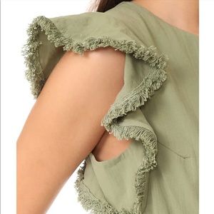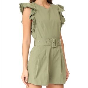 Round neck. Ruffled cap sleeves. Belt loops. Concealed back zip. Rise, about 13.5in. Inseam, about 2in. About 30in from shoulder to hem. Cotton. Hand wash. Model shown is 5'10in and wearing US size Small.