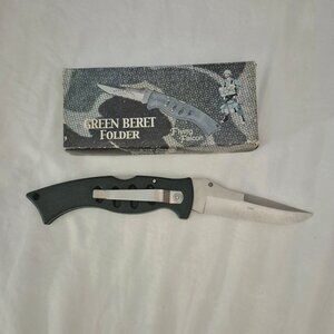 Collectable Folding knife. "Green Beret" in original box. Box shows some wear. Knife is in good condition. Vintage .Not intended for children. Not a toy.