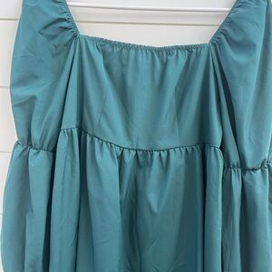 This casual sundress in a rich green hue features a square neckline and elegant bishop sleeves. The flowing silhouette and empire waistline create a flattering and comfortable fit, perfect for a night out.