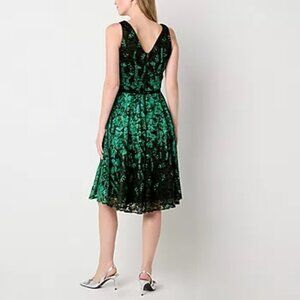 Sleeveless green & black lace fit and flare dress by Danny and Nicole.