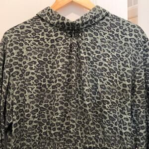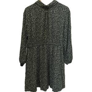 Green & Black Leopard Print Mini Dress Sz L Drawstring Rayon Casual Boho Animal