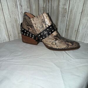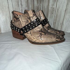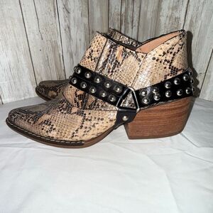 Green & Black Snakeskin Studded Harness Ankle Boots | Western Boho Rocker Bootie
