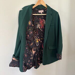 Green Blazer from Philosophy - Size 8 - Celestial print lining - Waffle texture