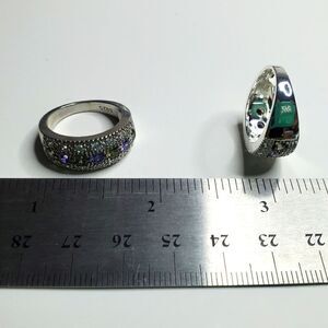 Green & Blue Diamonds Baguette White Diamonds Ring on 925 Silver Ring