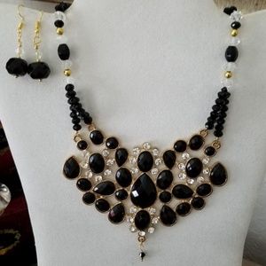 This is a large pendant about 2.5" wide at the base. The dichroic glass center features shades of blues and greens. It is set in non-tarnishing shiny stainless steel (never needs polishing). It will ship on a matching cord necklace (approx. 20") but you want wear it on another chain or omega, etc. It is brand new, purchased at the International Gem & Jewelry Show.