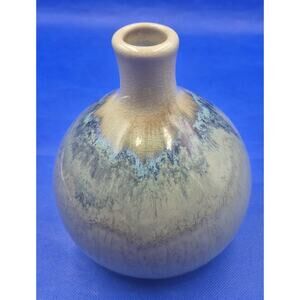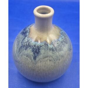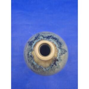 Green Blue Drip Glaze Art Pottery Vase 7.5x6"
