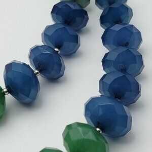 Green & Blue Faceted Acrylic Beaded Statement Necklace 26" Silver Tone Layered