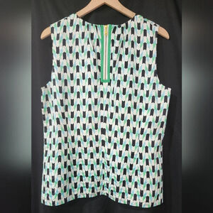 Green Blue Geometric Womens Silk Blend Top Size L Eclectic Artsy Contemporary