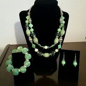 Matching lime green jewelry set includes: