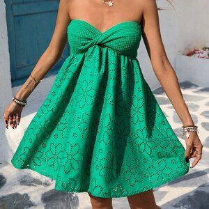 Green Boho Women's Knitted Patchwork Crop Top Mini Dress