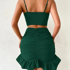 Green Boho Women's Solid Color Knotted Cami Pleated Asymmetrical Skirt…