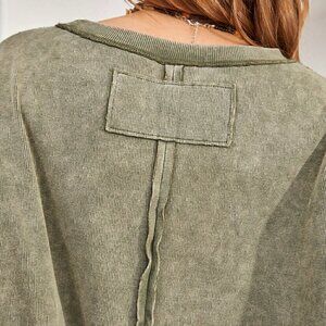 Green Boho Womens Stitching Detail Drop Shoulder T-Shirt