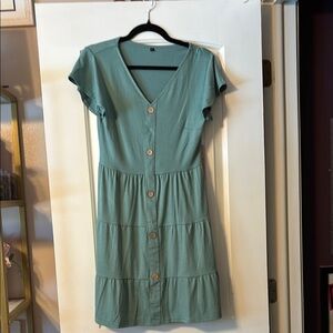 This elegant green button-down dress is perfect for any occasion. Its soft fabric and stylish design offer both comfort and sophistication.