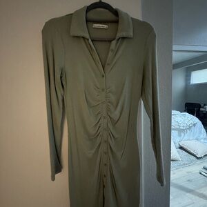 Chic olive ribbed shirt with button-up front. Classic collar design.