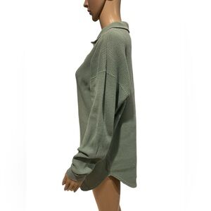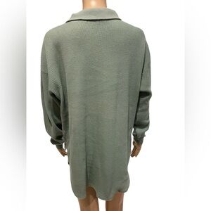 Stylish green sweater dress with button-up collar. Perfect for casual outings.