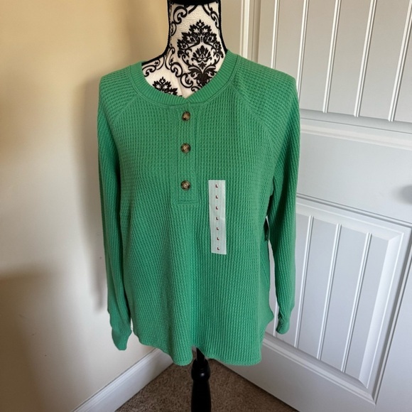 Stay cozy and stylish with this green button-up sweater. Perfect for any casual outing.