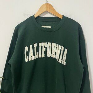 Stay cozy and stylish with this green CALIFORNIA sweatshirt. Perfect for casual outings and relaxed days.