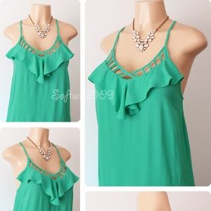 Green Caged Ruffle Racer Back Shift Dress