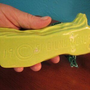 Made in the 1950s, this fun planter measures 5.5" long x 2.5" wide x 3.5" tall. Stamped on the bottom 1951.