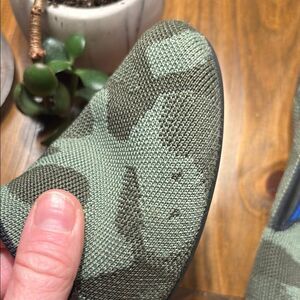 Trendy green camouflage slip-on loafers with a sleek design. Ideal for everyday wear.