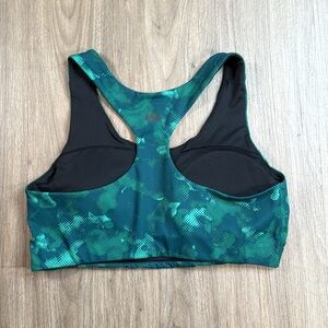 Stay comfortable and stylish with this green camouflage sports bra. Perfect for workouts or casual wear.