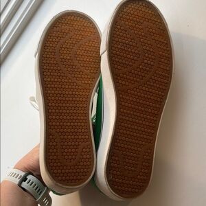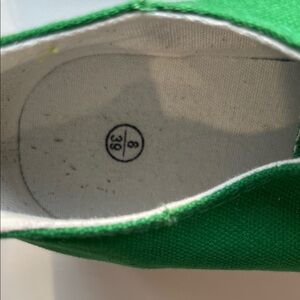 Stylish green canvas sneakers with white laces and toe caps. Perfect for casual wear.