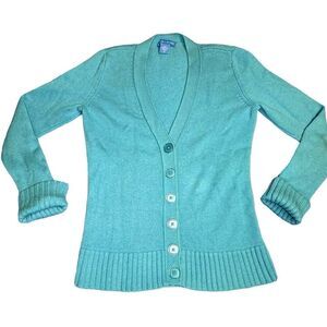 Green Cashmere White and Warren V neck button down knitted cardigan - XS- Small