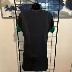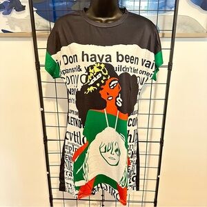 Crew neck graphic print T shirt dress, casual oversized short sleeves tee mini dress.This casual yet stylish T-shirt dress features a bold graphic print, making it a standout piece in your wardrobe. The relaxed fit and soft, breathable fabric ensure all-day comfort, while the short hemline adds a playful touch. Ideal for a laid-back day out or a casual get-together, this dress combines comfort with a statement-making design.