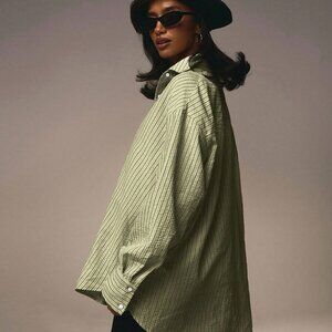 Green Casual Womens Long Sleeve Striped Front Button Blouse